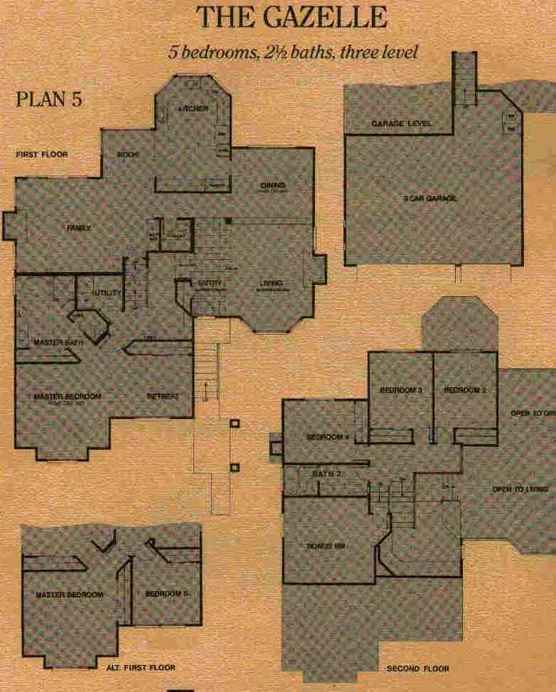 5 bedrooms, 2.5 baths, two story or three level home.